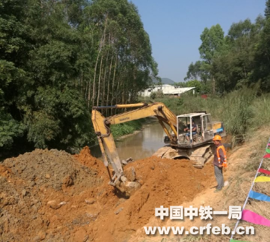 肇庆新区丰乐截洪渠综合整治工程,是中铁一局广州分公司今年2月底中标的水利水系工程,项目采用EPC模式即勘察、设计、施工一体化,总造价6.9亿元。项目征地拆迁难度大,工期紧。项目部见缝插针,积极推进。