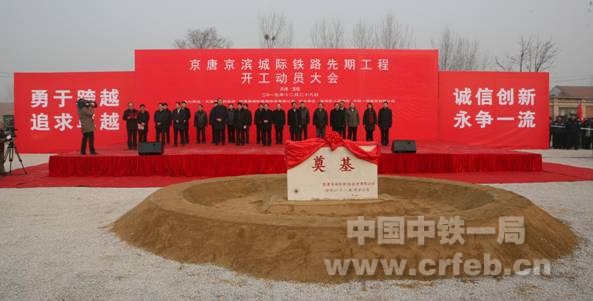 12月29日,京唐京滨城际铁路先期工程开工动员大会在中铁一局天津公司天津宝坻南站维修工区项目工地召开,大会的主题是“建设轨道上的京津冀,加快京津冀协同发展”。开工动员会由天津市人民政府、京津冀城际铁路投资有限公司主办,宝坻区人民政府、中铁一局集团有限公司协办。