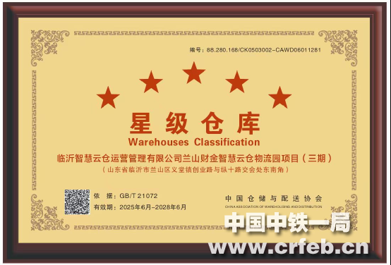 近日,从宁波第20届中国仓储配送大会暨第12届绿色仓配大会传来捷报 —— 由中铁一局承建的临沂智慧云仓智能冷链物流园建设项目,荣获中国仓储与配送协会授予的“五星级仓库”称号。