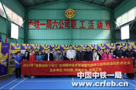 11月4日,中铁一局六公司工会联合天津市妇女体育协会、天津市河北区妇联成功举办“全民健康巾帼行”女排精神巡展宣讲暨气排球公益培训活动。天津女排冠军球员于鋆炜,天津市河北区妇联主席王丽红,副主席王晶、王艳艳,中铁一局工会副主席张瑞生及六公司负责人出席活动。