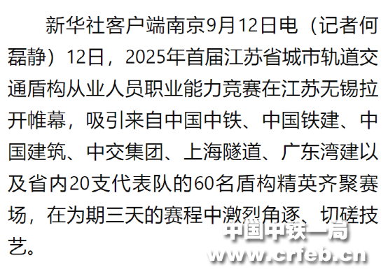 新华社客户端:江苏迎来盾构工匠“大比拼”