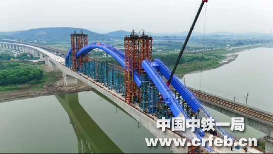 这座全长400米的提篮拱桥,以6度内倾弧线,在河面上勾勒出“蓝色巨蝶”的优雅姿态。然而,美丽的外表下隐藏着巨大的挑战——传统的原位支架法会危及旁边高速铁路的运行安全。面对这个难题,技术团队以“四两拨千斤”的智慧,为这座特殊的桥梁量身定制了“边拱肋原位拼装+中拱肋低位拼装后竖向提升”的全新方案。