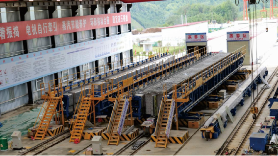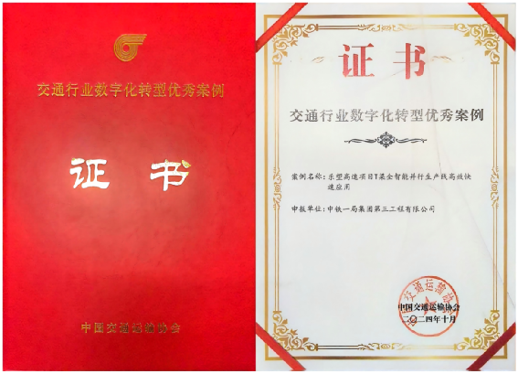 “T梁环形生产线”引进各种智能生产设备,并在整体液压模板、移动台座、蒸养线、智能张拉等数字化控制的基础上,利用互联网技术加强信息管理和服务,提高生产过程可控性,减少人为干预,极大提高了生产效率和梁体质量。2024年10月,该生产线获评中国交通运输协会“交通行业数字化转型优秀案例”。