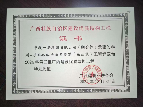 2024年12月,项目获评广西建设优质结构工程奖项;同月,公路预制梁智能化钢筋加工安装一体化施工技术等2项工法获评全国公路、中国中铁优秀工法;一种基于激光控制的桥梁墩柱垂直度控制仪等3项实用新型专利落地,20余项四新技术推广应用……一项项荣誉的背后,是项目团队的坚守与付出。