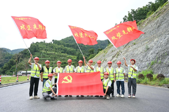 党建领航促发展,实干铸魂显担当。乐望高速项目连续三年蝉联中铁一局“三星党支部”标杆,青年团队勇夺“青年文明号”旗帜,团支部高擎“红旗团支部”火炬,今年7月更以卓越业绩荣获中国中铁“红旗项目部”重磅荣誉……这一连串奖励,既是党建引领下攻坚克难的生动注脚,更是项目将红色力量转化为发展动能的硬核印证。向未来,项目团队将持续深化党建引领,为年底通车目标实现注入红色动能,激活项目高质量发展新引擎。