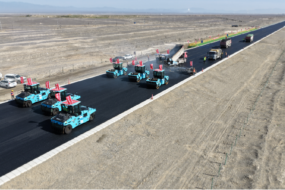 2025年9月,项目智能无人摊压机群技术应用的创新实践亮相“连霍高速新疆星哈吐段干旱荒漠区智慧低碳改扩建科技示范工程”技术交流暨观摩会,并得到交通运输部相关司局、哈密市人民政府、全国29个省(区、市)交通运输主管部门、科研院所及重点交通建设企业代表和专家的一致肯定。