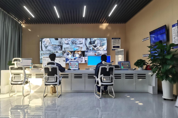 走进项目智慧拌和站,操作员在智慧拌和中心通过集成管控系统下达生产指令,大屏幕显示从原材料进场、投料搅拌到出料的全流程数据。砂、石等原材料进场经无人值守地磅系统自动称重并上传数据,智慧拌和系统全自动完成拌和流程,出料数据一览无余。