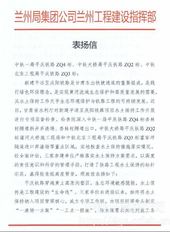 表扬是激励,更是责任。项目负责人表示,项目团队将以此次通报表扬为契机,持续发扬“铁军”作风,以更严标准、更实举措推进后续施工,全力将平庆铁路项目打造为“精品工程、绿色工程、放心工程”,为推动甘肃地区铁路建设高质量发展贡献力量。