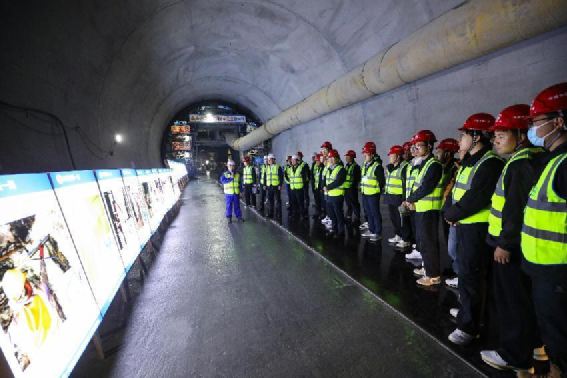 观摩团在朱家山隧道出口观看隧道工艺展板