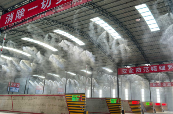 料仓喷雾降尘装置。根据粉尘产生位置,进行分区控制,极大地降低了生产过程中所产生的粉尘污染,同时也有效调节了料仓内的温度,进一步改善空气质量。采用智能喷雾系统,根据粉尘浓度、温度自动调节喷水量及时间间隔;喷淋水源确保严格净化,防止喷嘴堵塞,使高压细雾有效捕捉粉尘颗粒。