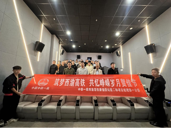 重庆城口讯:10月2日下午,中铁一局西渝高铁康渝段站前二标项目经理部一分部以“筑梦西渝高铁,共忆峥嵘岁月,与国同庆乐翻天”为主题组织全体员工开展国庆观影活动,在光影间传承红色基因,在团圆中凝聚建设力量。
