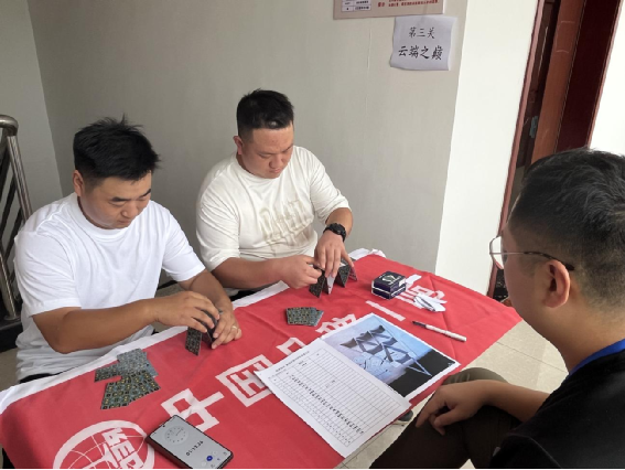 此次活动在二分部办公楼、篮球场、职工餐厅及会议室等多地同步开展。下午,“通天之路”闯关赛率先拉开帷幕。职工们从一楼大厅出发,依次挑战“锦绣传珠”“智满金秋”“云端之巅”三关,既有锻炼手眼协调的乒乓球运送,也有融合企业文化、安全知识以及爱国知识的知识问答环节,更有考验耐心与创意的扑克牌搭塔挑战。大家你追我赶,互相鼓励,现场气氛紧张而欢乐。随后进行的欢乐套圈、象棋比赛、王者荣耀电竞比赛等项目,更是将活动推向高潮。职工们在篮球场上精准投掷,在棋局中斗智斗勇,在电竞战场上团结协作,充分展现了高铁建设者们在紧张工作之外的多才多艺与青春活力。