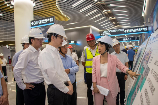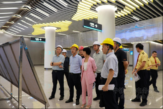 调研前,广州地铁集团副总经理谭文及公司党委委员、副总经理江新剑已先行察看项目建设情况。江新剑就项目关键环节和机电安装进度作了详细汇报。