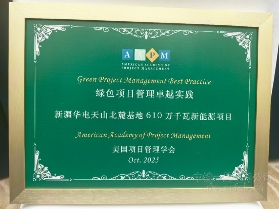 (雄安讯)近日,“科技创新·助力城市现代化”暨第二届工程建设创新与发展论坛在河北雄安新区成功召开。会上,公司参建的新疆华电天山北麓基地610万千瓦新能源项目,凭借突出的绿色管理实践,荣获2025年度美国项目管理学会(AAPM)“绿色项目管理卓越实践”荣誉。