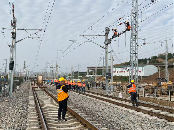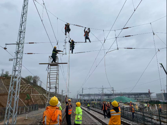(西安讯)初冬的白鹿原清晨,启明星还在天边闪烁,清冷的月光洒在广袤的原野上,给大地镀上了一层银霜。当第一缕晨光如金色的丝线穿透晨雾,落在山脚下的西安东站项目中心料库,8支接触网、电力、变电作业队伍近百名工人,以铿锵有力的点名答到声,打破了清晨的宁静。