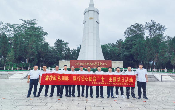(广西百色讯)6月28日上午,四分公司广西片区项目党支部组织党员领导干部前往百色起义纪念园,开展“赓续红色血脉,践行初心使命”七一主题党日活动。