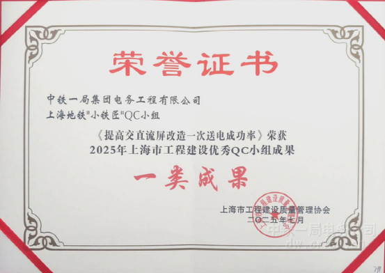 近日,中铁一局电务公司上海地铁大修改造项目部“小铁匠”QC小组凭借课题《提高交直流屏改造一次送电成功率》,在国家级“工程建设质量管理小组成果大赛”中荣获二等奖,并先后斩获上海市工程建设优秀QC小组一类成果等多项荣誉。