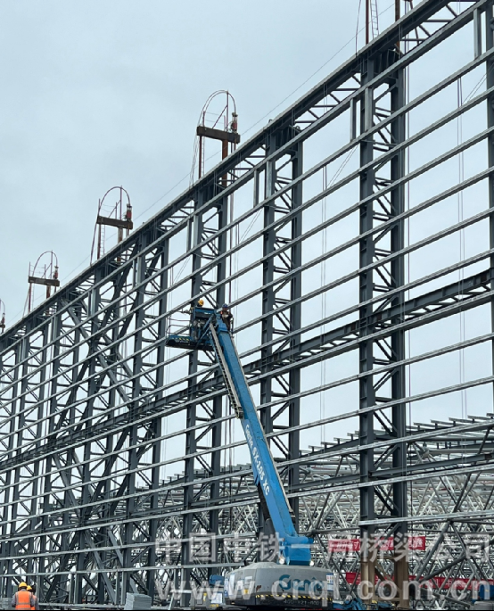 中铁一局重庆江北机场机务维修项目850吨钢网架成功提升
