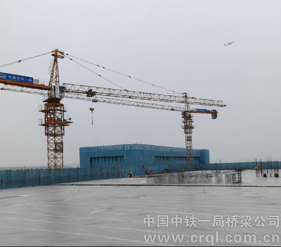 繁忙的江北国际机场,每隔几分钟便有一架飞机起降;长空之下,就是火热的中铁一局江北机场维修机库项目施工现场……