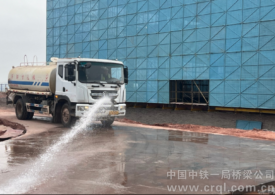 蓝天下施工,要安全,还要文明。项目部严格执行扬尘污染防治管控要求,在现场配备4台雾炮机、一台洒水车,及时进行水雾除尘和地面冲洗;施工围挡四周设有喷淋设施,每隔1小时便自动喷洒20分钟;加工和拆除木模板产生的锯末碎木,也都严格按照固体废弃物处理程序处理。2024年,项目部荣获重庆市“第三批扬尘控制示范工地”。