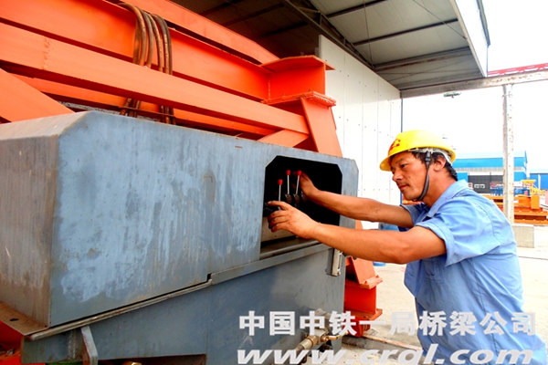 场区的另一角工地上,黄师傅正在赶着调试模板。他穿梭在狭窄的模板内壁,检查电路是否连接正常、支撑架是否受力均匀、操作系统是否灵活机动……他要确保模板调试工作万无一失,为即将到来的节段梁预制工作把好最后一道关口。认真工作的黄师傅根本没有注意到笔者在一旁的关注,当笔者 提出要给他留一个工作照时,黄师傅先是一怔,随即有些羞涩的点点头。