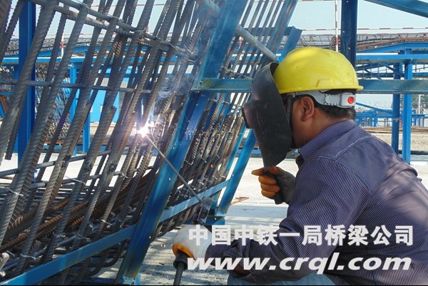 钢筋笼加工区更是一片繁忙景象。烈日下,十几名农民工兄弟穿着长袖工作服、戴着手套、拿着防护罩,包裹的严严实实,他们正在焊接钢筋笼,即使白日里,也火星四射。看到全神贯注工作的他们,笔者不忍心打扰,蹲下身来,拍下了一位农民工兄弟焊接钢筋笼的瞬间……