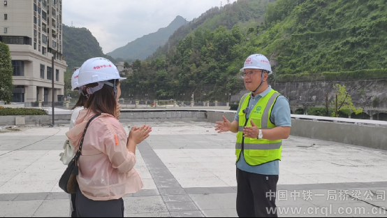 5月15日,城口县融媒体中心记者到中铁一局八公司滨河体育公园项目施工现场进行采访。