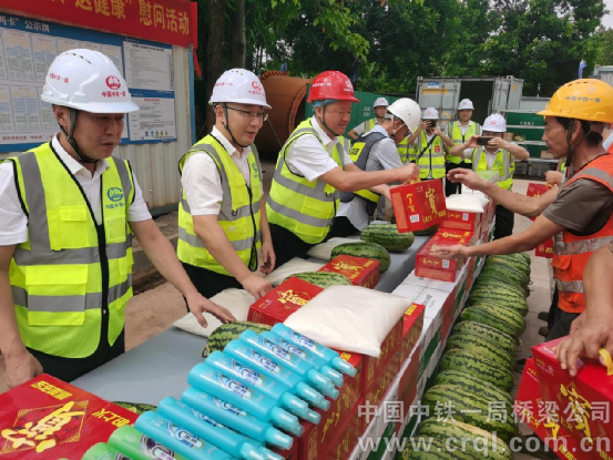 在花地河项目施工现场,刘辉代表公司工会向奋战在一线的人员送上了矿泉水、凉茶、西瓜、绿豆等防暑降温物品。他强调,高温天气室外施工人身安全是第一位,指挥部片区各项目要严格遵守夏季作息时间,尽量避免高温时段户外作业,同时要密切关注人员的身体状况,确保所有作业人员在健康、安全的环境下正常作业。
