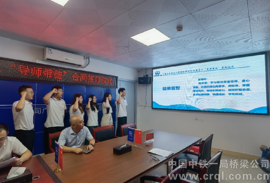 8月13日,在“导师带徒”合同签订仪式上,项目部为6名新员工各自安排了一位专业技术扎实、工作经验丰富的骨干导师,结成“一对一”的师徒关系,加强对新员工的业务技能培养,更好地发挥“传、帮、带”作用。签约仪式上,新员工及导师共同学习了《见习生管理办法》,分别进行集体宣誓。