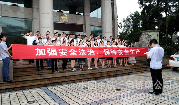 2015年6月是全国第十四次安全生产月活动,根据国务院安委办、中国中铁股份公司等上级单位统一部署和安排。2015年6月1日,在安全生产月的第一天,由桥梁公司安质部组织,在公司机关本部和各项目施工现场,进行以“加强安全法治、保障安全生产”为主题的安全宣誓和签名活动。