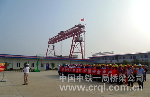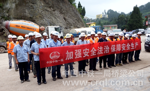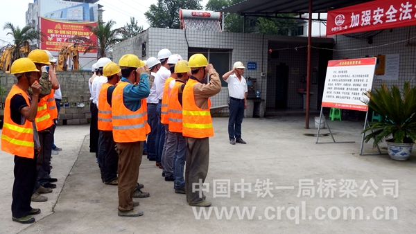 早上8:10分,伴随着清晨的朝霞和晨露, “我是一名中国中铁员工,我工作的安全和质量,关系到企业的发展和荣誉!我郑重承诺:忠诚企业、恪尽职守、珍爱生命、铸造精品!我坚决做到:遵守规章制度、遵守规范规程、遵守劳动纪律,不出事故、不出次品、不留隐患!我将以实际行动,确保企业安全生产、产品优质!”在重庆机关本部以及公司下属全国各地各项目施工现场,一声声庄严豪迈的誓言响彻云霄,洪亮整齐的声音以及庄严肃穆的表情,表达的是桥梁公司对安全生产的重视,是桥梁人对于安全的呐喊和承诺!宣誓后在桥梁公司总经理胡文俊的带领下,各位员工纷纷进行签名,写下“我要安全”的决心!