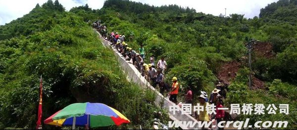 川黔铁路桐梓到綦江段受自然山体地形陡峭,泥石流滑坡面积大、垮塌土石方清理量大、信号中断,场地狭小,抢险恢复任务异常艰巨。抢险工作面狭窄,机械化施工较困难,但抢险一线中铁一局人精神饱满,意志坚定,从不喊累,不叫苦,爬高上低,各负其责,用人背马托运送物资并及时托运现场所需的各类工具,清理淤泥,砌筑排水沟,这就是最真实的抢险现场。