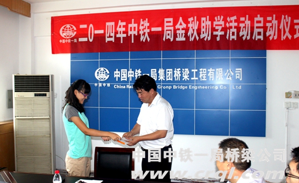 8月19日上午9时,集团公司“金秋助学”活动启动仪式在桥梁公司渭南基地举行。集团公司工会主席、副总经理王力,工会劳动保障女工部部长张方,桥梁公司工会主席梁永及中铁一局驻渭南各单位受助子女及家属代表参加了会议。