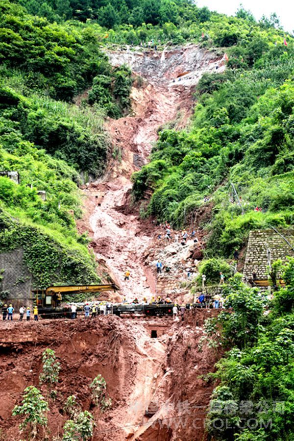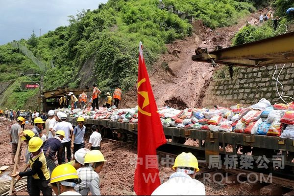 川黔铁路(现称渝黔线)全长423.6公里,每天通过的列车超过75列,是西南铁路网中运输极其繁忙的单线铁路。每天通过川黔铁路旅行的旅客有4万多人,经过川黔铁路运输的货物有8万吨。7月14日晚上9时许,川黔线K165+580段发生山体滑坡和泥石流,造成川黔铁路线路中断。受近期持续大暴雨的影响,受灾路段均位于海拔1600米以上的山区,加之通往山顶的道路狭窄、崎岖难行,道路泥泞,线路山顶上方泥石流不断下滑,塌方不断,给整个抢修工作带来了很大的困难。接渝黔铁路有限公司紧急通知,中铁一局员工临危受命,全力以赴、组织抢险。
