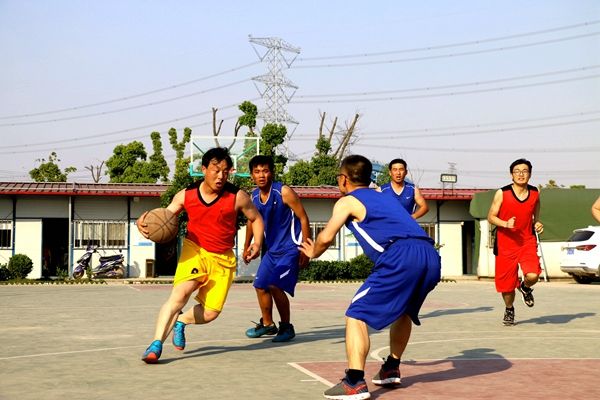 文字说明:项目部篮球赛中,队员们斗志昂扬,敢打敢拼。