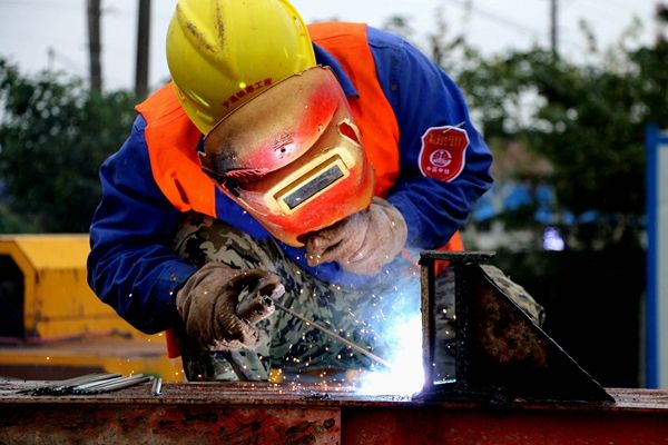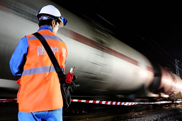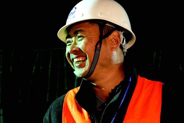 文字说明:顺利完成夜间封锁施工任务后,现场施工人员脸上露出笑容