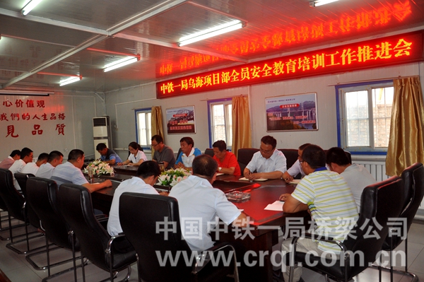 7月3日下午,中铁一局乌海项目部全员安全教育培训工作推进会召开,会议由桥梁公司工会副主席张凤翔主持。