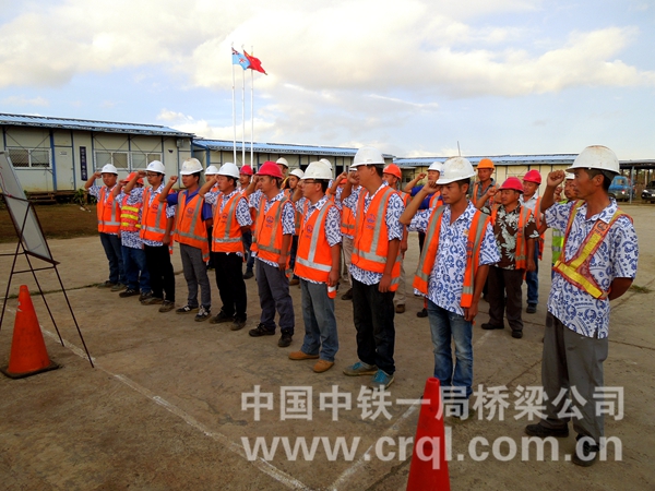 我是一名中国中铁员工,我工作的安全和质量,关系到企业的发展和荣誉!我郑重承诺:忠诚企业、恪尽职守、珍爱生命、铸造真品!我坚决做到:遵守规章制度、遵守规范规程、遵守劳动纪律,不出事故、不出次品、不留隐患!我将以实际行动,确保企业生产安全、产品优质!”6月12日上午,Nabouwalu项目一分部全体中方人员在项目部院内安全宣誓。