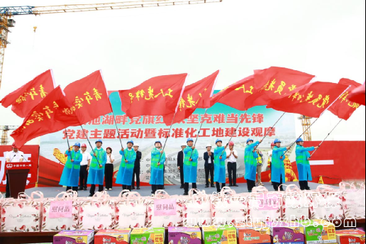 公司党委副书记、工会主席张君一宣读了开展“滇池湖畔党旗红 攻坚克难当先锋”主题活动的决定,项目负责人作了表态发言。与会领导为项目党员先锋队、工人先锋号和青年突击队授旗,党员先锋队、工人先锋号和青年突击队进行了集体宣誓,并向全体党员发出了活动倡议。全体与会人员深入施工现场,深入了解项目“滇池湖畔党旗红 攻坚克难当先锋”党建赋能工程,打造“党建+”工作模式,以高质量党建引领项目高质量建设的生动实践,参观了项目标准化工地建设及施工工艺,并观摩学习项目标准化内业资料、标准化党建资料,并围绕项目党建品牌建设深入探讨交流。