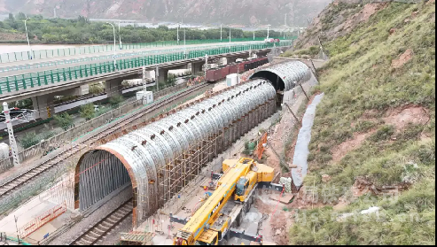 中铁一局七公司兰新线隧道增设明洞应急工程提前15天完成波纹板吊装