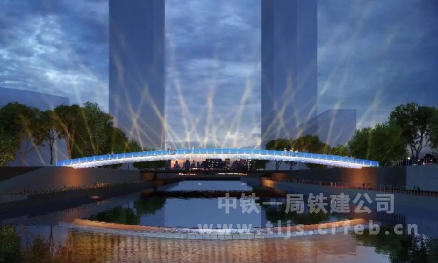 中铁一局郑州市金融岛北运河人行桥钢箱梁主体顺利合龙
