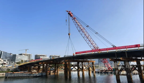紧张的施工过程中,项目负责人带领全体人员科学安排工期,在交通路口安排专人引导车辆,化解交通风险;组织团队学习水上作业规范,确保施工安全可靠;持续优化吊装方案,降低施工难度,最终顺利达成项目关键节点目标。