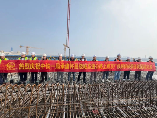 中铁一局许昌绕城高速涉铁项目转体梁浇筑圆满完成