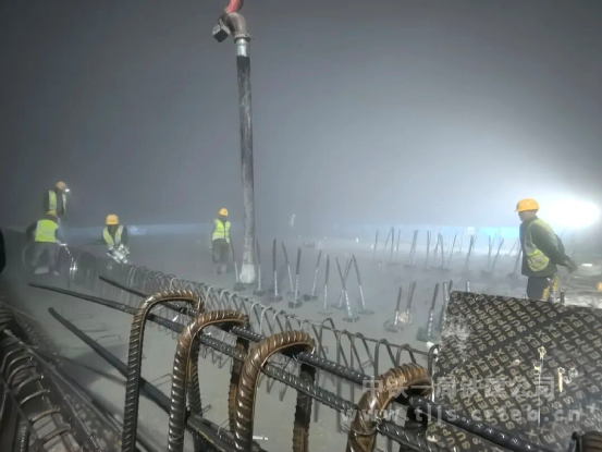 作为许昌市绕城高速公路重难点控制性工程,此次施工的转体桥需上跨被誉为中国铁路南北大动脉的京广铁路干线。施工期间,不仅必须确保京广铁路这一繁忙干线的运输安全绝对不受影响、时刻保持畅通,还要保证转体桥梁结构的最终就位精度与内在质量万无一失,其技术难度与安全标准要求均极高。自9月9日启动首次浇筑以来,项目团队直面技术复杂、安全风险高的挑战,历经48个昼夜的连续攻坚。通过科学规划与精细管控各环节,将整个浇筑过程划分为10个阶段有序推进,确保了工程质量和进度处于受控状态。
