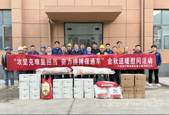 10月15日,河南省许魏绕城高速公路有限公司总经理骆强率队到中铁一局许昌绕城高速项目开展“攻坚克难显担当 奋力拼搏保通车”金秋送暖慰问活动。