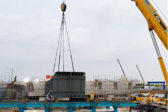 济南遥墙机场I匝道钢箱梁首件成功吊装