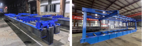 据研发团队介绍,该台车分为门架与模板两部分,生产前期围绕制作图纸及施工工艺可行性组织了多轮研讨分析,以过程管理为抓手,提前制作对应工装,加强原材料入厂质量检测,严格把控每道工序。试拼装后,技术团队对门架走行系统及悬吊功能开展厂内测试,各项功能均稳定运行。