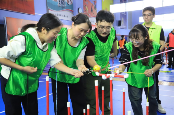 本次趣味运动会精心设置了6个兼具趣味性与协作性的项目,每个环节都暗藏“团队密码”。“巨人脚步”考验队员间的节奏同步,大家绑着绑带齐声喊号,一步一步向着终点迈进,展现出高度的默契;“节节高升”中,职工们小心翼翼地搭建道具,在一次次调整与配合中,体会“积小胜为大胜”的道理;“孤注一掷”环节,参赛选手瞄准目标全力投掷,现场欢呼声与喝彩声此起彼伏;“追求卓越”项目里,大家向着同一目标奋力冲刺,用速度与激情诠释奋斗精神;“精诚携手”要求队员手拉手完成挑战,让“团结就是力量”的信念深入人心;“同舟共济”则模拟团队面对困境的场景,众人齐心协作,共同“渡过难关”。