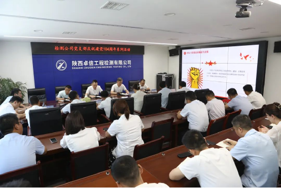为庆祝中国共产党成立104周年,深入推进作风建设,公司党支部于7月1日组织开展了主题鲜明、内容丰富的系列庆祝活动。活动旨在教育引导全体党员听党话、跟党走,立足本职工作,为企业发展做出贡献,并将贯彻落实中央八项规定精神学习教育推向深入。公司领导马龙、陈吉强、张国勇、曹小军出席活动。
