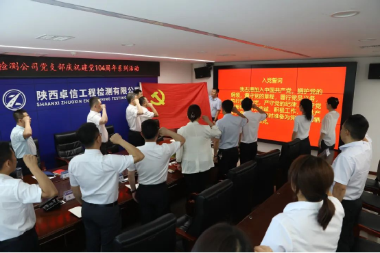 为庆祝中国共产党成立104周年,深入推进作风建设,公司党支部于7月1日组织开展了主题鲜明、内容丰富的系列庆祝活动。活动旨在教育引导全体党员听党话、跟党走,立足本职工作,为企业发展做出贡献,并将贯彻落实中央八项规定精神学习教育推向深入。公司领导马龙、陈吉强、张国勇、曹小军出席活动。